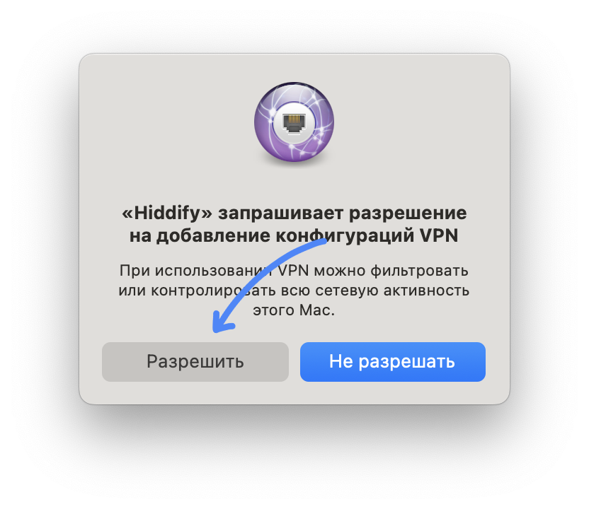 Запустите установленную программу и дайте согласие на добавление конфигурации